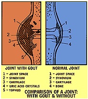 Gout is essentially a form of rheumatic arthritis characterized by recurrent episodes of joint inflammation. The pain and swelling of gout are caused by uric acid crystals that deposit in some joints, most notably the big toe, but the disease can also strike the knee, ankle, foot, hand, wrist and elbow. Most men contract gout for one of two reasons: First, it is a hereditary problem, like baldness, and if your father had it you probably will too (thanks Dad!); and second, because they have a diet high in purines. Normally uric acid passes out of the body through the kidneys in urine. An excess of purines causes the body to make more uric acid than the kidneys can dissolve, a condition called hyperuricemia. (It is possible to have hyperuricemia without having gout, however.) In addition to the two causes mentioned above, hyperuricemia can also occur from using diuretics, which can impede the kidney’s ability to remove uric acid.