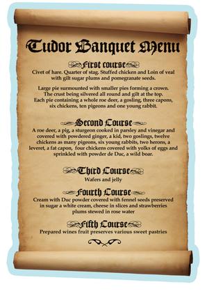 - Tudor Food for a Banquet or Feast consisted of three, four, five, and even six courses