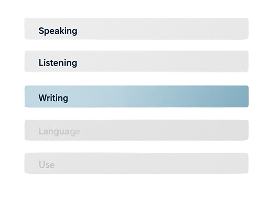 O serviço analisa, de forma estruturada, as principais competências do idioma: fala, compreensão oral, escrita e uso da gramática.