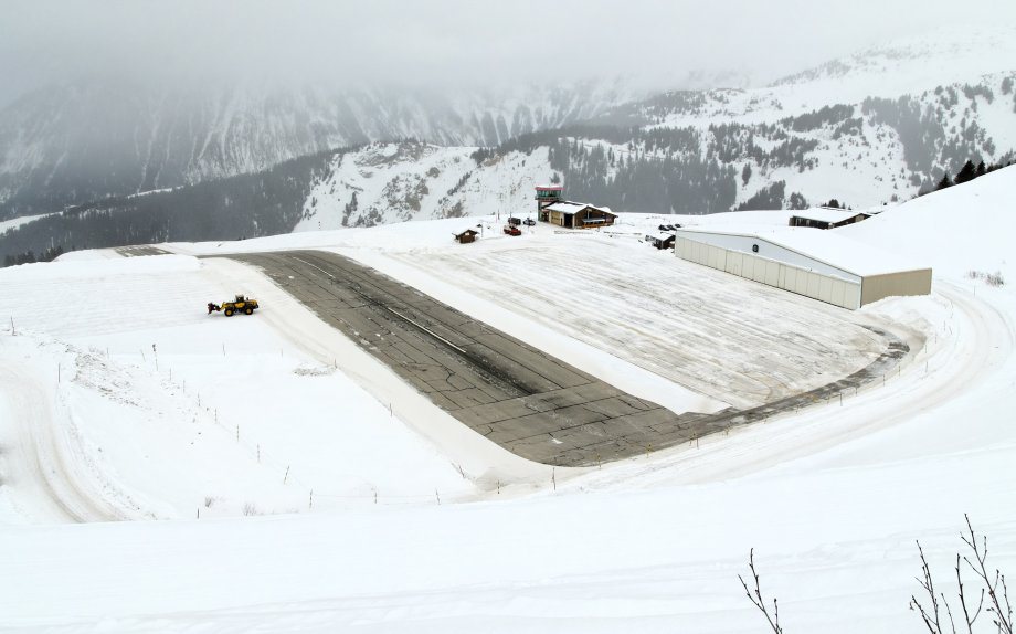 This runway in the Alps has a snowy 1,700-foot runway, but the real challenge is the 18.5% grade that you have to navigate for takeoff and landing